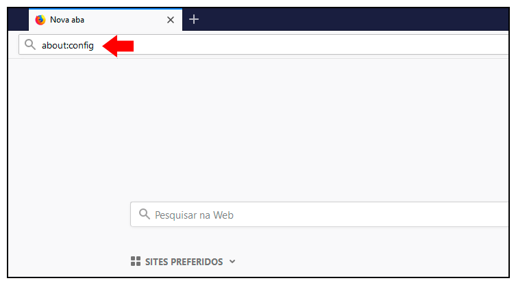 ( 2 ) Na barra de endereços, digite “about: config” e tecle “Enter”.